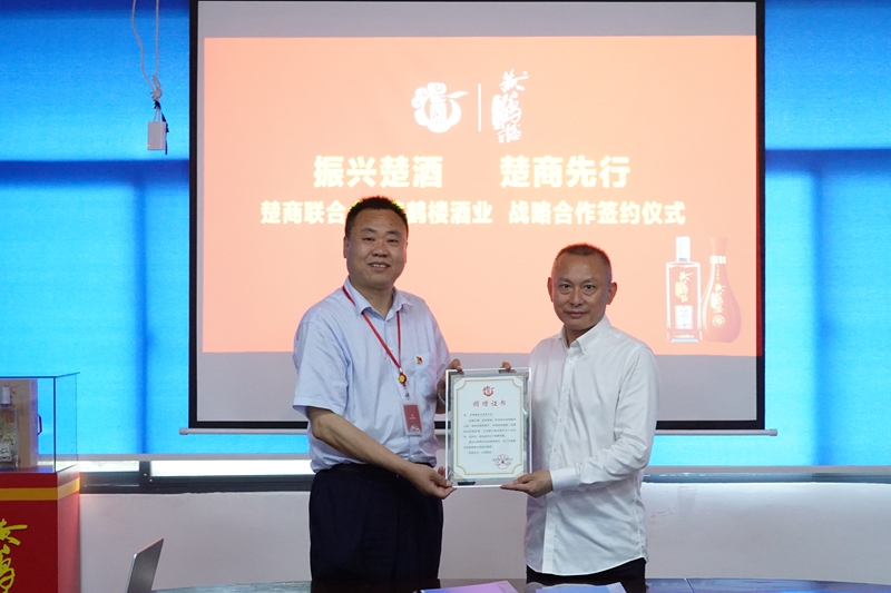隨后,蹇宏代表湖北省楚商聯合會為黃鶴樓酒業授予抗擊疫情捐贈證書、2019年度優秀楚商企業證書。