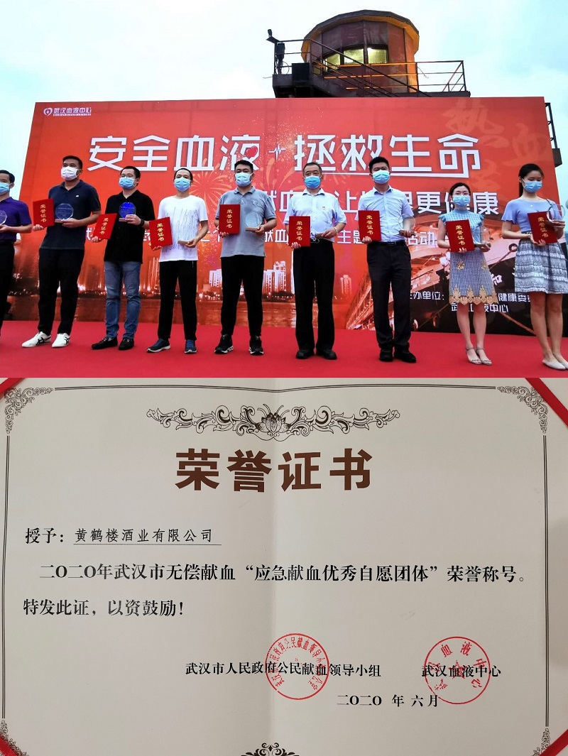 活動中,武漢市人民政府公民獻(xiàn)血領(lǐng)導(dǎo)小組聯(lián)合武漢市血液中心授予黃鶴樓酒業(yè)2020年武漢市無償獻(xiàn)血“應(yīng)急獻(xiàn)血優(yōu)秀自愿團(tuán)體”榮譽(yù)稱號。