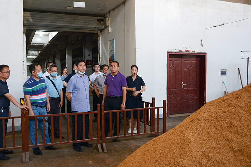 秦尊文一行調研了景區商貿中心、黃鶴樓酒文化館、洞釀第一坊、美酒銀行、酒香花果山等地。調研中,李良就黃鶴樓酒生態釀酒工藝及公司在疫情中所做貢獻、未來發展規劃作詳細介紹。