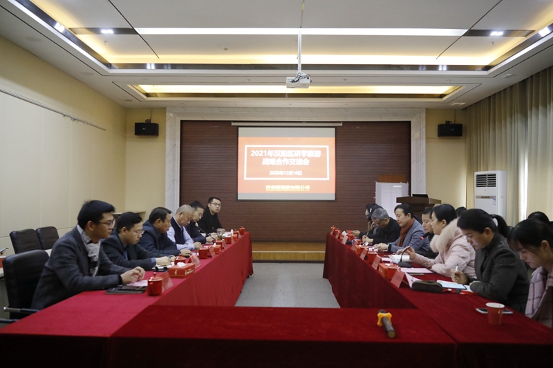 12月10日,2021年漢陽區研學旅游戰略合作交流會在黃鶴樓酒文化博覽園召開。漢陽區文化和旅游局黨委書記、局長徐麗,黨委委員王傳江,全國勞動模范、漢陽區江欣苑社區黨委書記胡明榮出席會議。中南國旅湖北有限責任公司董事長龍新民,副總經理鄒婷、羅則躍,健民集團副總裁布忠江,中鐵大橋局武漢橋梁傳媒有限公司副總經理、橋梁博物館館長成莉玲,張之洞與武漢博物館館長毛慧參加會議。黃鶴樓酒業黨委委員、總經理助理魏國主持會議。