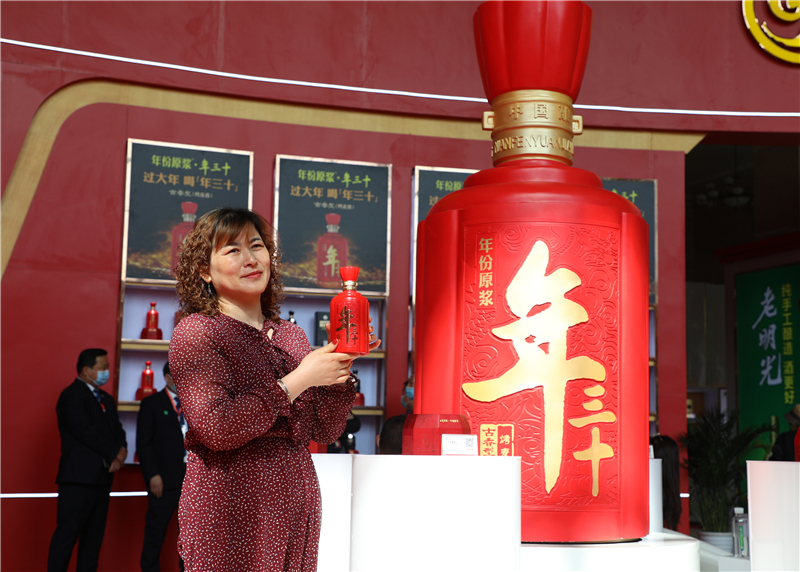 步入展廳,巨大的年份原漿·古20和年份原漿·年三十模型吸引了眾多消費者、客戶駐足拍照。前來參觀、品嘗和咨詢的各路客商絡繹不絕。
