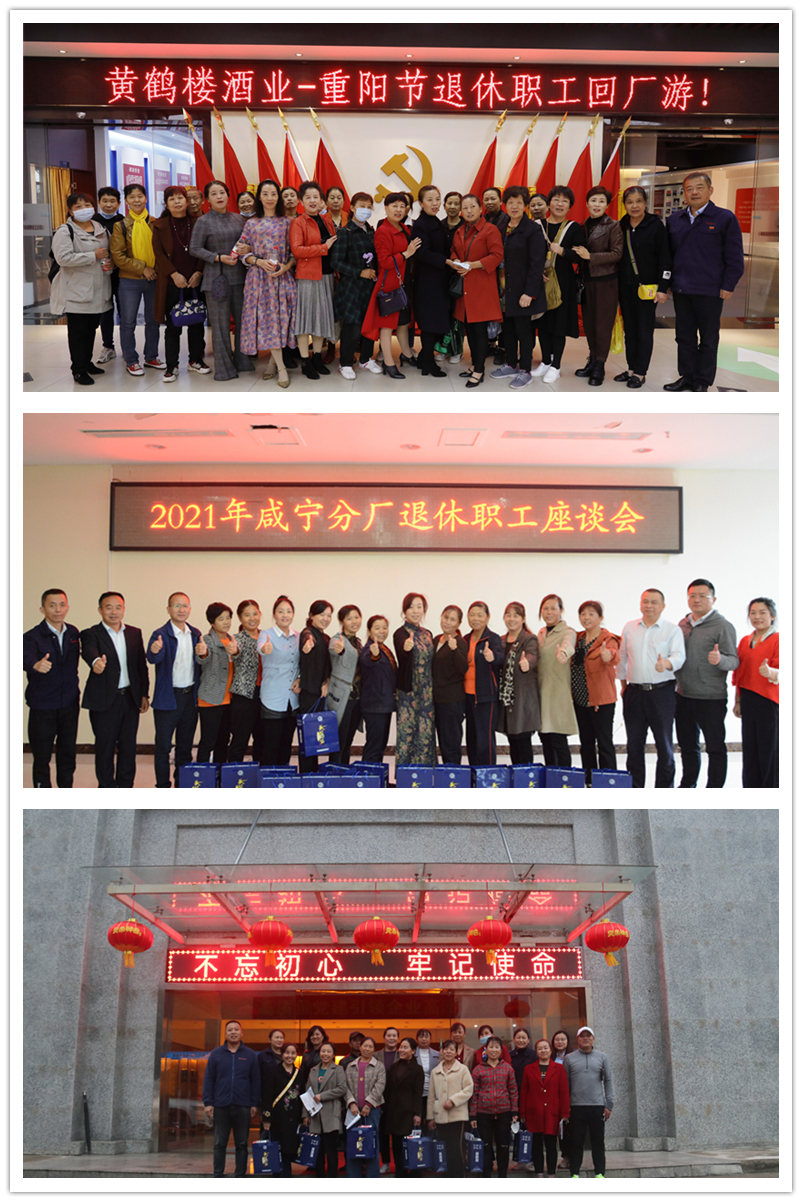 三地回廠活動形式多樣。武漢組織回廠游,帶領老員工們重溫故地,把酒言歡。咸寧、隨州開展座談會,了解退休職工生活現狀并介紹公司目前的發展形勢,送上佳節祝福與禮品,組織觀看企業宣傳片,暢談黃鶴樓酒業未來發展新藍圖。