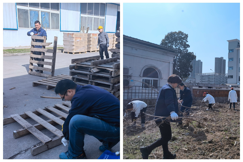 在咸寧廠區,咸寧黨總支組織咸寧分廠全體黨員、志愿者前往包裝車間樓頂開展“學雷鋒辦實事·美化灌裝區”活動。