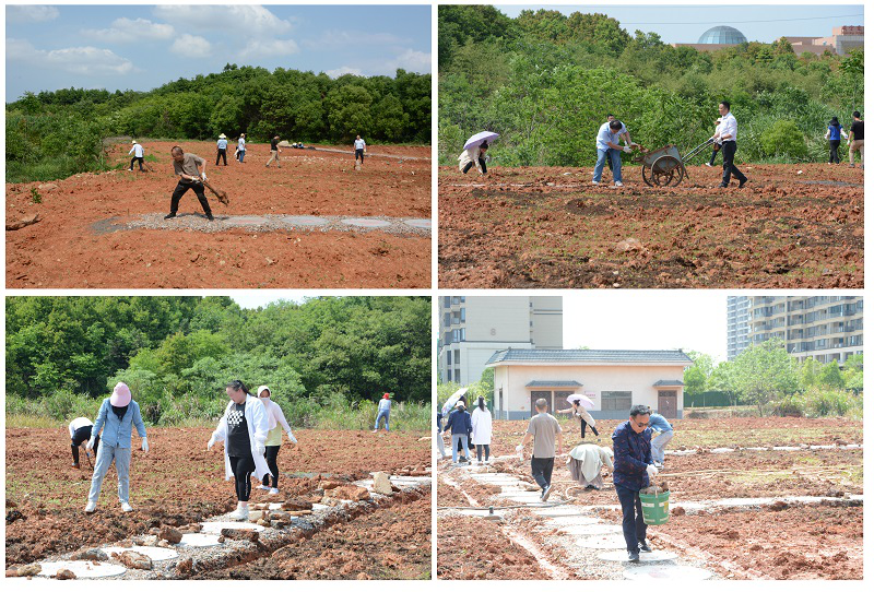 活動中,大家分工明確,干勁十足,撿石頭、裝車、運輸,以飽滿的熱情投入勞動中。經過三個多小時的奮戰,百草園里的石頭全部清理干凈。