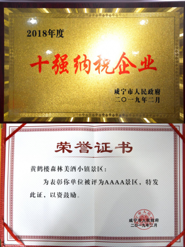 2月22日,在咸寧市人民政府五屆三次全體(擴大)會議中,黃鶴樓酒業(咸寧)有限公司獲評2018年度咸寧市“十強納稅企業”。會上,咸寧市政府還對“黃鶴樓森林美酒小鎮”成功獲評國家AAAA級景區提出表彰并予以30萬元獎勵。