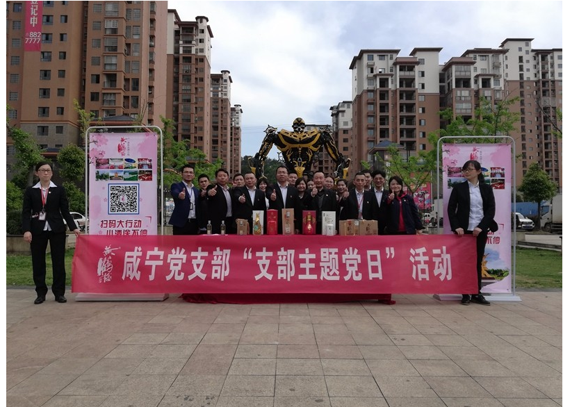 4月16日,咸寧黨支部組織全體黨員在青龍山公園開展支部主題黨日5+N“助力品牌+景區(qū)宣傳”活動。咸寧分廠黨支部書記、廠長李良,酒體設計總工程師李久洪,釀造管理中心總監(jiān)助理趙源生,咸寧分廠總監(jiān)助理陳朝陽參加活動。