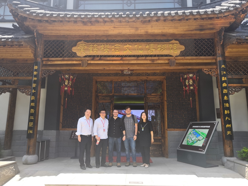 Leonardo Antonelli一行參觀了天成坊釀造車間、名人酒窖和酒文化博物館,對黃鶴樓酒業的歷史文化、釀造工藝表現出濃厚興趣。黃曉文詳細介紹了黃鶴樓酒的使用原料、發酵方式、釀造工藝、窖藏條件及與其它香型白酒的區別。品嘗大清香原酒后,Leonardo一行表示清香型酒香味純正、口感爽凈。同時,歡迎黃鶴樓酒業到百威參觀考察,并期待今后有更多交流合作的機會。