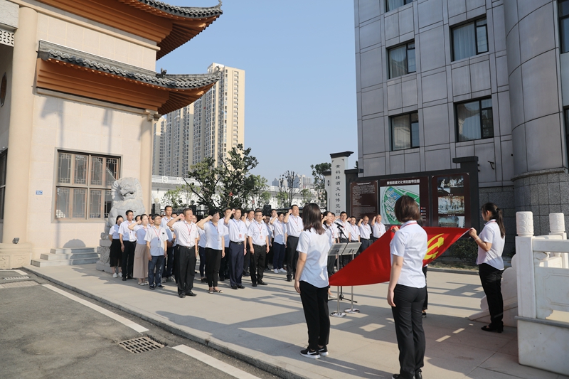 8時30分,升國旗、奏國歌,全體觀禮人士面向旗桿肅立,五星紅旗伴著朝陽徐徐升起,在晨風(fēng)中飄揚(yáng)。隨后,在莊嚴(yán)的中共黨旗前,麻玉俠帶領(lǐng)各位員工重溫入黨誓詞,黃曉文帶領(lǐng)各位員工宣讀黃鶴樓酒業(yè)誓詞,勉勵各位員工為實(shí)現(xiàn)中華民族偉大復(fù)興的中國夢、黃鶴樓酒名酒復(fù)興的企業(yè)夢不斷奮進(jìn)!